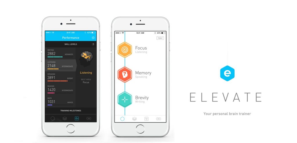 Priljubljena možnost za nego spomina po 50. letu je Elevate. Njegove vaje, ki se prilagajajo različnim ravnem in ustvarjajo osebni načrt, se osredotočajo na izboljšanje komunikacijskih sposobnosti, branja in matematike. Odlikuje ga čist in motivirajoč dizajn, ki je zelo enostaven za uporabo.
