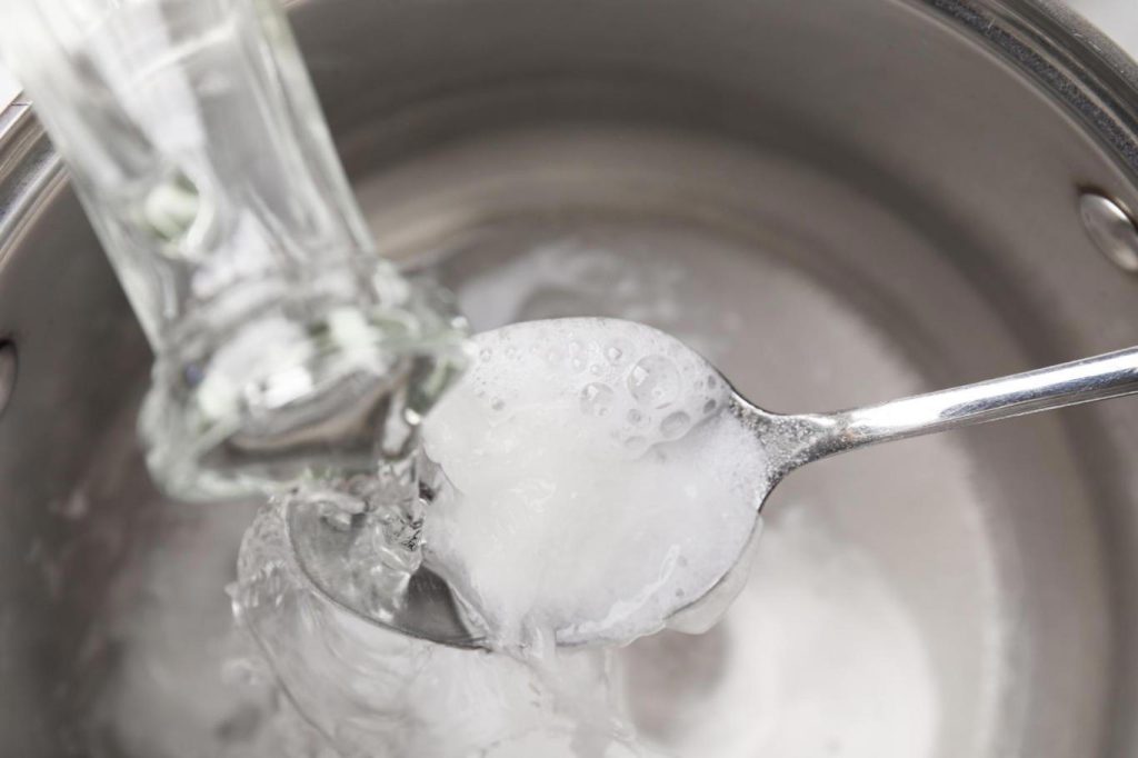 Priprava domače mešanice sodnega bikarbona in vodikovega peroksida je zelo preprosta in poleg tega poceni. Da dobite homogeno pasto, ki jo je enostavno nanesti na želene materiale in površine, priporočamo, da v posodi zmešate tri dele sodnega bikarbona z enim delom vodikovega peroksida (10 vol).
