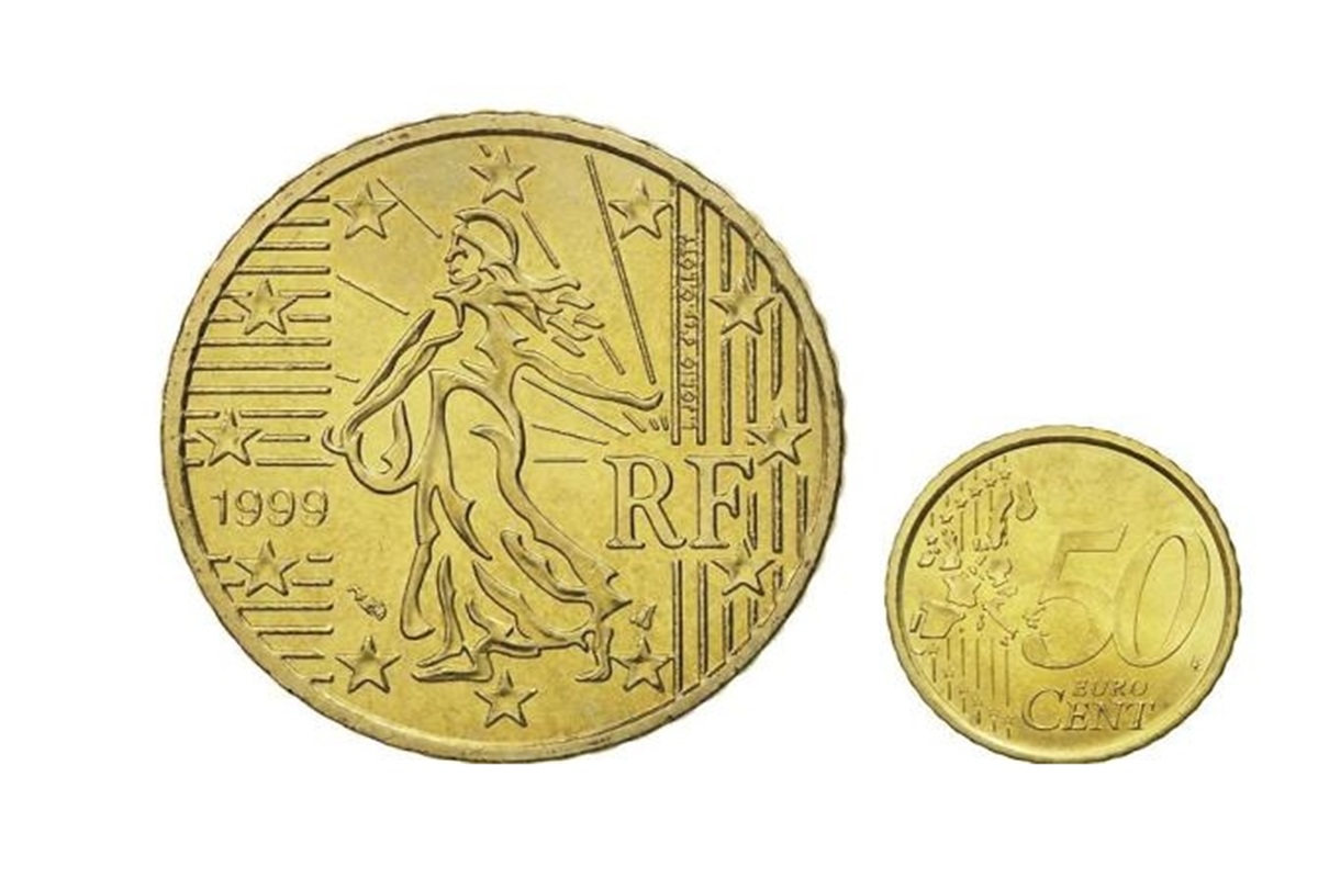 Za uvedbo evra v obtok je Francija leta 1999 skovala več kot 106 milijonov kovancev za 50 centov, nekateri med njimi v kompletih in v kakovosti proof. Proizvodnja teh kovancev se je nadaljevala do leta 2002, ko je bila ustavljena. Med letoma 2003 in 2017 ni bilo v obtoku francoskih kovancev za 50 centov, zato je te kovance iz tega obdobja mogoče najti le v kompletih. Kovanje se je ponovno začelo leta 2018, lani pa je pariška kovnica kovancev napovedala spremembo oblike kovancev za 10, 20 in 50 centov.