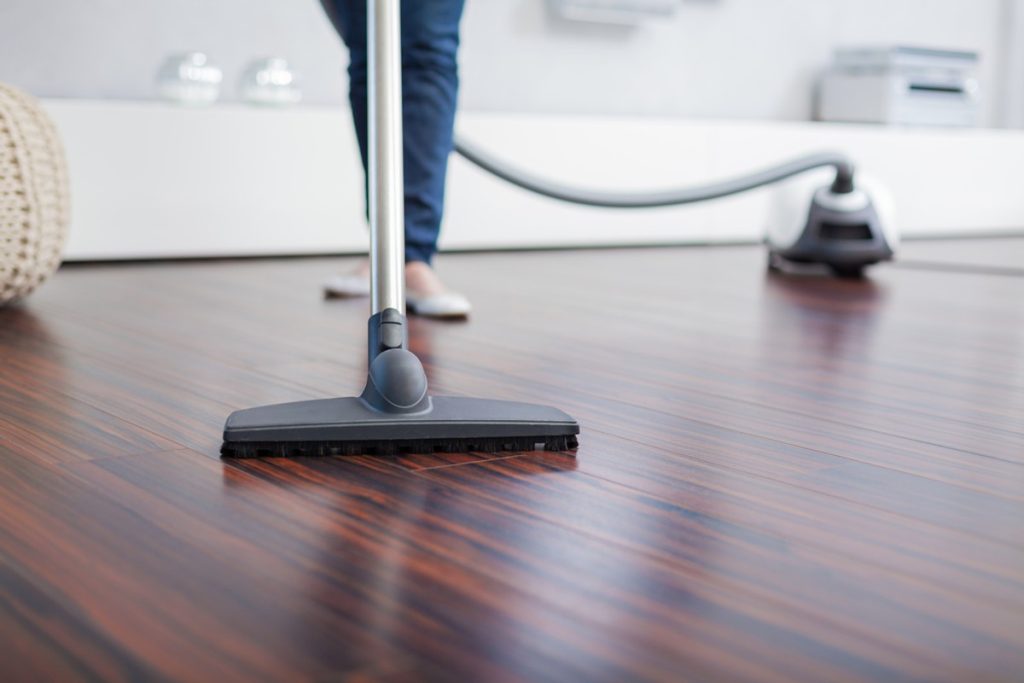 - Laminatni ali zatesnjeni leseni tlaki: uporabite samo toplo vodo z nekaj kapljicami nevtralnega mila in dobro ožemite krpo, da ne ostane preveč vlage.
